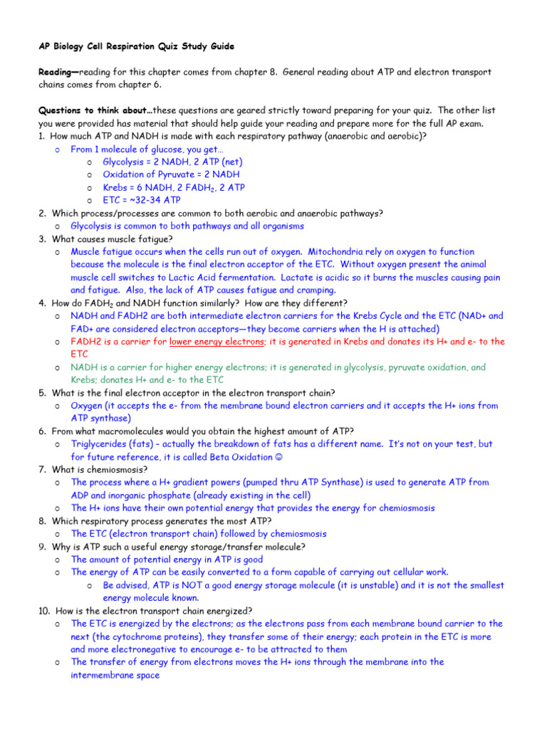 Ap Biology Cell Respiration Quiz Study Guide Answers Pdf Cellular Respiration Fermentation